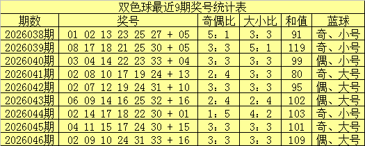 奇偶分析:最近30期奇偶比为13:17,最近10期奇偶比为5:5,最近5期奇偶比为2:3,本期注意奇数蓝球出现。