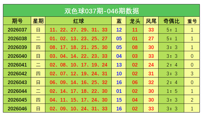 双色球第2026046期开奖奖号:红球02、09、10、24、31、33,蓝球16。龙头02,凤尾33,奇偶比3:3开云现金网,开出1枚重号。
